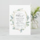 O convite para fotos de casamento do eucalipto herbário da floresta selvagem com moldura geométrica dourada e lavagem com aquarela prateada foi projetado para ser rápida e facilmente personalizado de acordo com as suas especificidades de evento. A foto no verso é opcional. Se você a remover, role para baixo até a parte inferior de "Personalizar este modelo" e clique em "Editar usando a ferramenta Design". Na Ferramenta Design, você pode editar, dimensionar, excluir ou mover qualquer texto ou elemento design.
