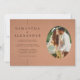 Escolha este modelo de convite de casamento minimalista único com uma elegante inscrição clássica e uma das suas fotografias de noivado favoritas num quadro oval sobre um delicado fundo floral de terracota leve. Ao contrário, você pode adicionar todos os detalhes do casamento, para criar um convite de casamento único, amigável, mas luxuoso. Adicione seus detalhes e solicite seus convites agora. Se precisar de ajuda, solicitar personalização adicional ou produtos correspondentes, ou tiver perguntas e sugestões, entre em contato. Agradeço o seu feedback e voltarei a falar com vocês em breve!