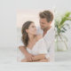 Este convite de casamento apresenta um momento terno entre um casal que se abraça, ambos vestidos de branco, criando uma paleta de cores harmoniosa e serena de brancos e bege claro. O fundo suave e desfocado sugere uma ambientação idílica de praia com indícios de ondas e céu, reforçando o estilo naturalista que enfatiza a calidez e a intimidade. A representação fotográfica captura uma interação espontânea e alegre, transmitindo um clima de felicidade e tranquilidade. Perfeito para casais que buscam um design elegante e de coração para celebrar seu dia especial.