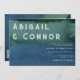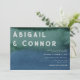 Elementos: fundo de lavagem com aquarela de abstrato. Nomes e detalhes aparecem nas fontes sans sans sif modernas. A parte traseira apresenta foto e código QR RSVP. Cores: azul, verde, esmeralda, oceano, verde-mar, marinho, azul real, azure. Temas: tons modernos, minimalistas, contemporâneos, joias. Coleção: Coleção Moderna de Casamentos de Teal Azul Minimalista. Tipo de produto: Convites de casamento