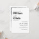 Anuncie seu grande dia com um estilo de alto impacto usando este convite de casamento simples "Foto Minimalista" em preto e branco. Customizado para uma estética sofisticada e moderna, este cartão premium apresenta uma paleta monocromática atemporal combinada com uma tipografia serif elegante e um layout de foto full-bleed para sua foto de noivado favorita. Mais do que apenas um convite, serve como um souvenir artesanal e comovente que transforma o anúncio do seu casamento em uma experiência personalizada e de alta qualidade para seus entes queridos. Basta clicar em "Personalizar" para carregar sua foto e adicionar os detalhes da cerimônia, garantindo que você deixe uma impressão polida, profissional e romântica desde o momento em que chega à caixa de correio deles.