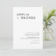 Este é um convite de casamento moderno minimalista com uma design simples e elegante. Edite todos os textos, cores e fontes para fazer com que este ajustado moderno de convite de casamento seja necessário para seu evento e estilo pessoal.