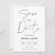 Foto minimalista moderna do casamento de trás Salve a data do casamento minimalista moderno salve a data com um moderno título de caligrafia de linha mono e um divisor de linha fino. A foto do casal aparece no verso. Excelente para um casal procurando por uma simples foto moderna, salve a data.