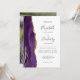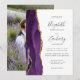 A borda esquerda deste elegante convite de casamento moderno apresenta uma cor d'água roxa, borda agitada, aparada com falso brilho dourado. O texto personalizável combina a escrita manual de cinzas de carvão, as fontes em copperplate e itálico em um fundo branco. Substitua facilmente a imagem de amostra no verso pela sua foto vertical,