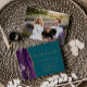 A borda esquerda deste elegante convite de casamento moderno apresenta uma cor d'água roxa, borda agitada, aparada com falso brilho dourado. O texto personalizável combina manuscrito dourado, fontes em copperplate e itálico em um fundo azul lacrimogêneo. Substitua facilmente a imagem de exemplo no verso por sua própria foto horizontal.