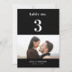 Decorre sua mesa de casamento com este cartão, apresentando a noiva e a fotografia moderna do noivo e o texto personalizado de sua escolha. Adicione facilmente seus próprios detalhes clicando na opção "personalizar".