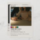 Anuncie seu dia especial com este na moda Moderno Salve a data com um cartão com foto frontal de cheio e um layout de detalhes limpo e estruturado no verso. Com espaço para sua data de casamento, local, informações de recepção e site, este design oferece beleza e função. Tipo clássico de serifa, um bar de paleta de cores saborosas, e sua foto personalizada fazem deste cartão um eterno ainda moderno para começar sua suíte de papelaria de casamento.