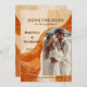 Anuncie seu dia especial no estilo de eterno com o nosso Convite de Data Moderno para Salvar, com um charme retrô. Apresentando uma foto carinhosa e um sofisticado design de retro laranja queimado, este convite dá o tom perfeito para sua celebração de casamento. Personalize-o com seu instantâneo favorito para criar uma manutenção exclusiva e memorável para seus convidados. Avise seus entes queridos para salvar a data em estilo com nosso Retro Elegante Salvar o Convite de Data.