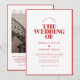 Este convite de casamento monocromático moderno apresenta um layout limpo com uma borda vermelha arrojada, combinando design minimalista com detalhes reveladores. Perfeito para casais que buscam um na moda e uma maneira contemporânea de anunciar seu dia especial.