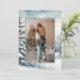 Feliz e Cartão de Natal de Foto Envolvido/Salve a Data. Espaço para 1 foto vertical. Adicione seu texto personalizado no verso. Apresentando aquarela em cada cena de inverno verde.