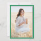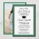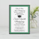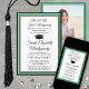 Compartilhe a alegria de uma formatura do ensino médio ou faculdade e convide familiares e amigos para celebrar com esses convites personalizados em verde, preto e branco. (DICA DE POSICIONAMENTO DA IMAGEM: Uma maneira fácil de centralizar uma imagem exatamente como você deseja é cortá-la antes de fazer o upload para o site da Zazzle.) Este modelo de estilo formal inclui os nomes dos pais e do graduado, bem como qualquer informação de sua escolha, como detalhes da celebração, honrarias especiais, título do diploma, citação inspiradora favorita, novo endereço do graduado, planos de educação futura ou cargo. Todas as palavras são fáceis de personalizar. O design apresenta um fundo branco moderno, um boné preto de formatura, caligrafia elegante, tipografia tradicional e uma foto de sua escolha, como uma foto de formatura ou imagem da cerimônia de formatura. Esses cartões de anúncio de formatura são uma maneira moderna e sofisticada de compartilhar a celebração do seu dia especial com familiares e amigos. Parabéns ao graduado!