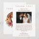 Expresse sua gratidão em estilo com essas Cartões de Agradecimentos Modernos. Apresentando um elegante design de cavalos abraçando dentro de um arranjo floral em forma de coração, este design simboliza amor, harmonia e unidade — perfeito para um casamento country-oeste com encanto rústico. Personalize-os com sua foto favorita de casamento, nomes, seu site guiando seus convidados para suas fotos online, e uma mensagem sincera para transmitir sua apreciação. Estas cartas não só expressam obrigados como também servem como uma bela lembrança do seu dia especial.