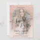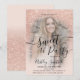 Um chá brilhante, moderno, bonito e vítreo, rosa-ouro, magro, com um bloco de cor rosa branco suave, cor-de-rosa, Sweet 16 convite de aniversário com sua foto personalizada com padrão rosa ouro ombre desaparecendo sobre um fundo rosa-pinto-pinto-penteado. Perfeito para uma princesa Doce dezesseis com uma tipografia moderna e elegante escrita com letra de pincel.