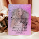 Um moderno, bonito, roxo roxo e chá brilhante cor-de-rosa com um bloco cor rosa neon Quinceañera convite de aniversário com sua foto.