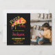 Convites Foto Orange Black Red Pizza Birthday Invances