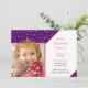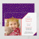 Celebre o seu aniversário com um cartão de convite roxo e personalizado real que apresenta um fundo elegante de estrelas douradas e brilhantes. Personalize esta brilhante design com uma foto da sua jovem aniversariante, completa com uma bela princesa dourada ou coroa rainha. Adicione um toque especial aos detalhes personalizados do evento. Este convite bonito é uma adição perfeita à festa de aniversário de qualquer menina e também está disponível como uma evite digital. Veja a coleção de cheios para uma versão com o príncipe de um menino ou coroa-rei.