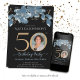Convites Foto Personalizada Azul Dourado Floral 50º Anivers