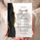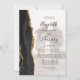 Este elegante design de casamento apresenta uma foto vertical do casal amolecida com uma tela branca para destacar a camada de texto. A borda esquerda apresenta uma borda preta de aquarelas aparada com falso brilho dourado. O texto preto personalizável combina escrita manual, impressão e fontes itálicas. A parte de trás é sólida e escura.