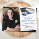 Convites de aposentadoria da polícia de linha azul fina. Celebre anos de serviço dedicado e convide amigos e familiares para a sua festa de aposentadoria na polícia com este Convite para aposentadoria da Polícia de Sinalizador Azul Thin. DESIGN americano na Polícia de Sinalizador, cores modernas, preto branco e design azul. Este convite para aposentadoria de policial também é perfeito para convites para formatura na academia de polícia, mudança de local na personalização. Veja nossa coleção para combinar presentes de aposentadoria da polícia, favoritos para festas de aposentadoria da polícia e suprimentos. COPYRIGHT © 2021 Judy Burrows, Black Dog Art - Todos Os Direitos Reservados. Foto personalizada da polícia - Fino Convite para Reforma de Sinalizador de Linha Azul