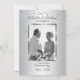 Cartões de convite de aniversário de casamento elegantes, mas modernos, de 25 prata. Folha de prata falsa e confete com 25 grandes com coração de diamante falso no meio. Personalize estas cartas de aniversários de casamento com as suas informações e fotografia/imagem. Fácil de editar. Ver coleção correspondente; adesivos, guardanapos, etiquetas etc.