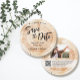 Capture o encanto do seu casamento e crie um cartão de salvamento único com este convite personalizado. O design de cartão redondo é inspirado por placas de disco de madeira frequentemente vistas em casamentos rústicos e botânicos, acrescentando um toque de beleza natural ao seu dia especial. Personalize o cartão com os nomes da noiva e do noivo, juntamente com a data e o local do casamento. Você também pode incluir seu site de casamento, permitindo que seus convidados acessem facilmente todas as informações importantes sobre sua celebração. Para torná-lo ainda mais conveniente, incorpore um código QR que direciona os convidados diretamente para o seu site de casamento quando digitalizado. Aumente ainda mais o convite, incluindo uma ilustrada foto do casal feliz, acrescentando um toque pessoal e sincero. A tipografia do guiamento de mão dá ao design uma sensação moderna, mas rústica, criando um convite que é simultaneamente na moda e memorável. Este cartão de salvamento é perfeito para casais que querem fazer uma impressão duradoura e fornecer aos seus convidados uma maneira conveniente de se manterem atualizados sobre os detalhes do casamento. É uma maneira maravilhosa de dar o tom para o seu casamento com temas rústicos e garantir que os seus hóspedes estejam animados para se juntarem a vocês no seu dia especial.