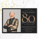 Foto Personalizada Elegante Convite de Aniversário para 80 Dourado Preto. Celebre um aniversário marcante com nosso convite para o Elegante Simples Preto e Dourado, perfeito para adicionar um toque de sofisticação ao seu dia especial. Este design personalizável apresenta um fundo preto elegante adormecido com sotaques dourados elegantes, criando um eterno e um aspecto elegante. Personalize-o ainda mais com uma foto personalizada para tornar seu convite realmente único e memorável. Ideal para quem aprecia uma estética refinada, esse convite dá o tom para uma celebração que será apreciada por anos.