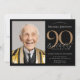 Foto Personalizada Elegante Convite de Aniversário para 90 Dourado Preto. Celebre um aniversário marcante com nosso convite para o Elegante Simples Preto e Dourado, perfeito para adicionar um toque de sofisticação ao seu dia especial. Este design personalizável apresenta um fundo preto elegante adormecido com sotaques dourados elegantes, criando um eterno e um aspecto elegante. Personalize-o ainda mais com uma foto personalizada para tornar seu convite realmente único e memorável. Ideal para quem aprecia uma estética refinada, esse convite dá o tom para uma celebração que será apreciada por anos.