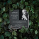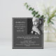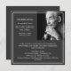 Convite ao funeral quadrado em cinzas escuras com detalhes de cinzas pálidas e fontes clássicas, e o espaço para adicionar uma foto do seu amado.