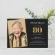 Convites Foto personalizada, preto e 80 Dourado Aniversário