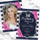 Convites Foto prateada rosa azul marinho 50º aniversário