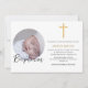 Convites Foto redonda azul-cristão elegante | Batismo