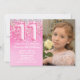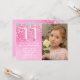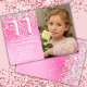 11 de Aniversário Foto Rosa Cintilante, de Aniversário, convite de aniversário de 11 Girly Pink Glitter para uma menina de 11 anos com modernos roteiros escrevendo e balões de folha divertida.