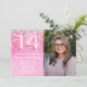 14 de Aniversário Foto Rosa Cintilante, de Aniversário, convite de aniversário de 14 Girly Pink Glitter para uma menina de 14 anos com modernos roteiros escrevendo e balões de folhas divertidas.