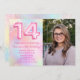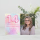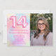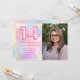 Foto de 14 do Arco-Íris Rosa, Aniversário, convite de aniversário de 14 Girly Pink Glitter, para uma menina de 14 anos com modernos roteiros escrevendo e balões de folha divertida.