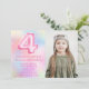Foto rosa Rainbow 4º aniversário Convite Girly Pink Glitter 4º convite de festas de aniversário para uma menina de 4 anos com escrevendo de script moderno e balões de folha de papel divertidos.