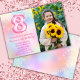 Foto rosa Rainbow 8º Aniversário Convite Girly Pink Glitter 8º convite de aniversário para uma garota de 8 anos com escrevendo de script moderno e balões de folha de papel divertidos.