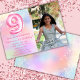 Foto rosa Rainbow 9º Aniversário Convite Girly Pink Glitter 9º convite de aniversário para uma garota de 9 anos com escrevendo de script moderno e balões de folha de papel divertidos.