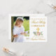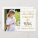 O Elegante Watercolor Pink Blush Floral Primeiro Convite à Santa Comunhão inclui rosas rosa, flores brancas e verde. Dourada Cruz. Frente fotográfica.