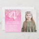 Foto: Rosa, Brilho, 4º Aniversário, Convite Girly Pink, convite de festas de 4º aniversário para uma menina de 4 anos com escrevendo moderno de escrita e balões de folha divertida.