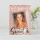 Dê um pouco de glamour à sua doce festa de aniversário 16 pela sua garota brilhante com este belo convite de mocinha moderna e moderno com gotas de glitter de ouro rosa, adicione uma foto