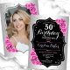 Convites Foto rosa preta prateada elegante 50º aniversário