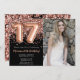 Convites Foto Rosa preto com brilho Dourado 17º aniversário
