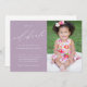 Este convite de aniversário para garotas elegantes apresenta caligrafia bonito e uma grande foto. A palavra "celebrar" é escrita em letras brancas contra um fundo roxo lavanda. Personalize facilmente os detalhes da sua festa de aniversário e a sua fotografia favorita. A parte traseira do convite é vazio e pode acomodar informações ou fotos adicionais.