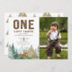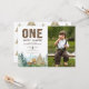 Este divertido convite rústico tem uma madeira chamada "ONE" e um campista feliz. O fundo tem uma floresta aquosa, montanhas e paisagem. É finalizado pelos elementos de acampamento bronzeado, verde e castanho, que incluem uma tenda e uma lareira. O dorso tem um padrão da mesma tenda de aquarela.