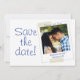 Este estilo de fotografia de tendência salve a data do anúncio da placa apresenta a foto do casal rodeada por um quadro branco. Um design de fita de mascaramento se senta acima e abaixo da foto. Uma fonte de estilo de escrita manual é usada no cartão. A cor da fonte é azul.