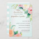 Correspondência Salvar a data, anúncio do Noivado com fotografia que pode ser facilmente alterada usando os campos modelo. fornecidos. Mande isso cedo, logo depois que você se engajou para que a família e os amigos possam fazer seus planos para estar em sua celebração! Esta coleção foi criada de pinturas de aquarela originais por Audrey Jeanne Roberts com um estilo painterly e aquoso que é perfeito para casamentos românticos contemporâneos. Se você está planejando um casamento ao ar livre, um evento no estilo do país rústico ou uma elegante recepção floral, este convite pode ser perfeito! Um simples design central tem um layout de texto moderno. Fácil de personalizar usando os modelos fornecidos. Rosas cor-de-rosa, de pêssego e brancas em pastos macios, juntamente com tendrils de videira pequenas e flores silvestres esticadas. No verso está uma faixa cor-de-rosa pincelada, com cor d'água, com imperfeições naturais desenhadas à mão. ANTECEDENTES: azul aqua gelado pastel macio
