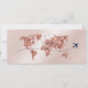 Bilhete de Passagem de Embarque de Praia de Destino Plano Dourado Salve a Data com o ícone do coração e do plano com o mapa do mundo do rosa dourado de brilho. Adicionar sua foto e código qr