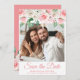 Foto floral cor de pêssego rosa salve o cartão de data, com um fundo texturizado muito leve. Personalize nomes, datas e informações.