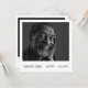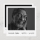 Convites exclusivos e legal de aniversário de morte que imitam o aspecto de uma foto retrô instantânea. A frente tem uma foto do seu ente querido junto com as datas de nascimento e morte em letra de letra de letra e a parte de trás tem os detalhes do evento. Um design moderno e minimalista que é simples e torna o quadro o principal foco do convite.