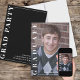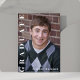 Esse design apresenta um convite para formandos, com um modelo de fotografia simples, com cores pretas e brancas, perfeito para o formando segundo grau, minimalista, com tipografia ousada, limpo, perfeito para o formando de graduação, com a classe de 2024
